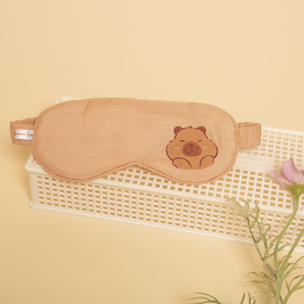 Bịt mắt lụa tơ tằm vẽ hình Capybara