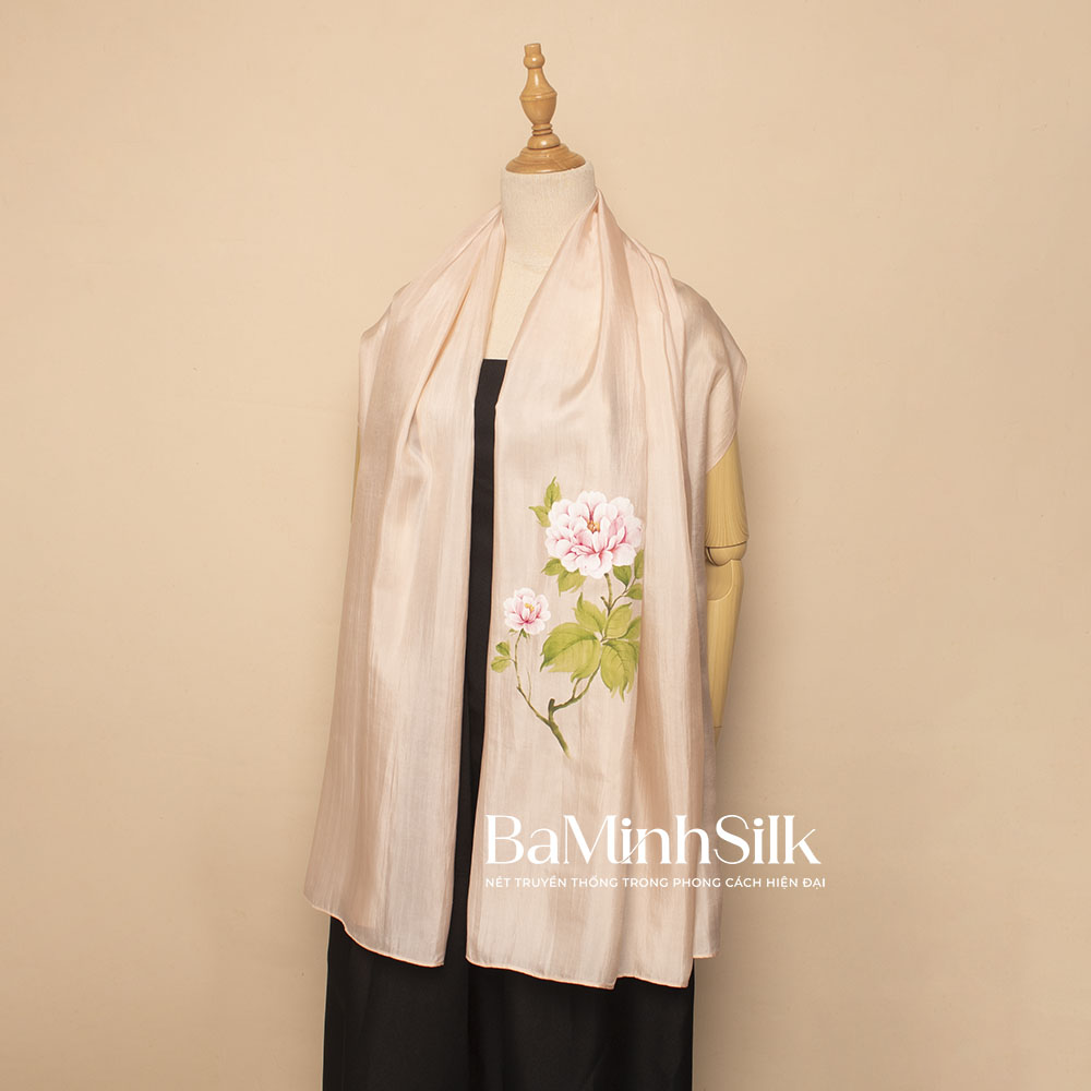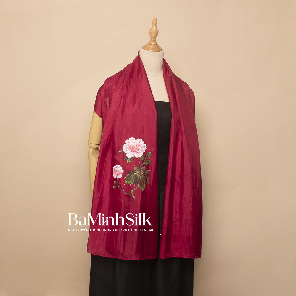 Khăn choàng lụa vẽ tay Hoa Mẫu Đơn cao cấp 85x180cm
