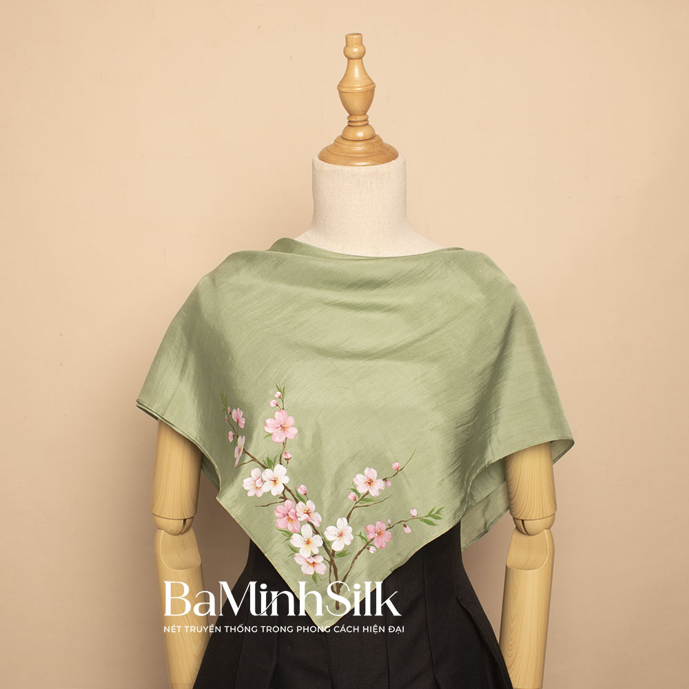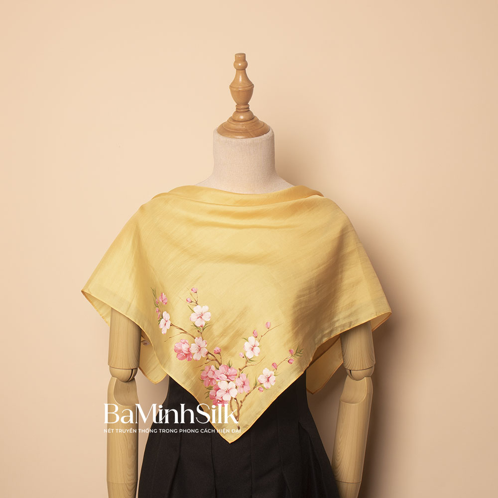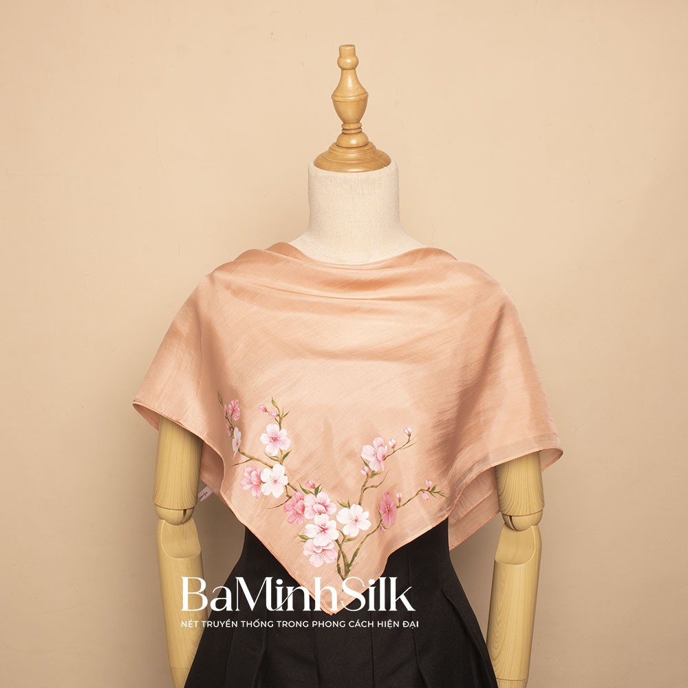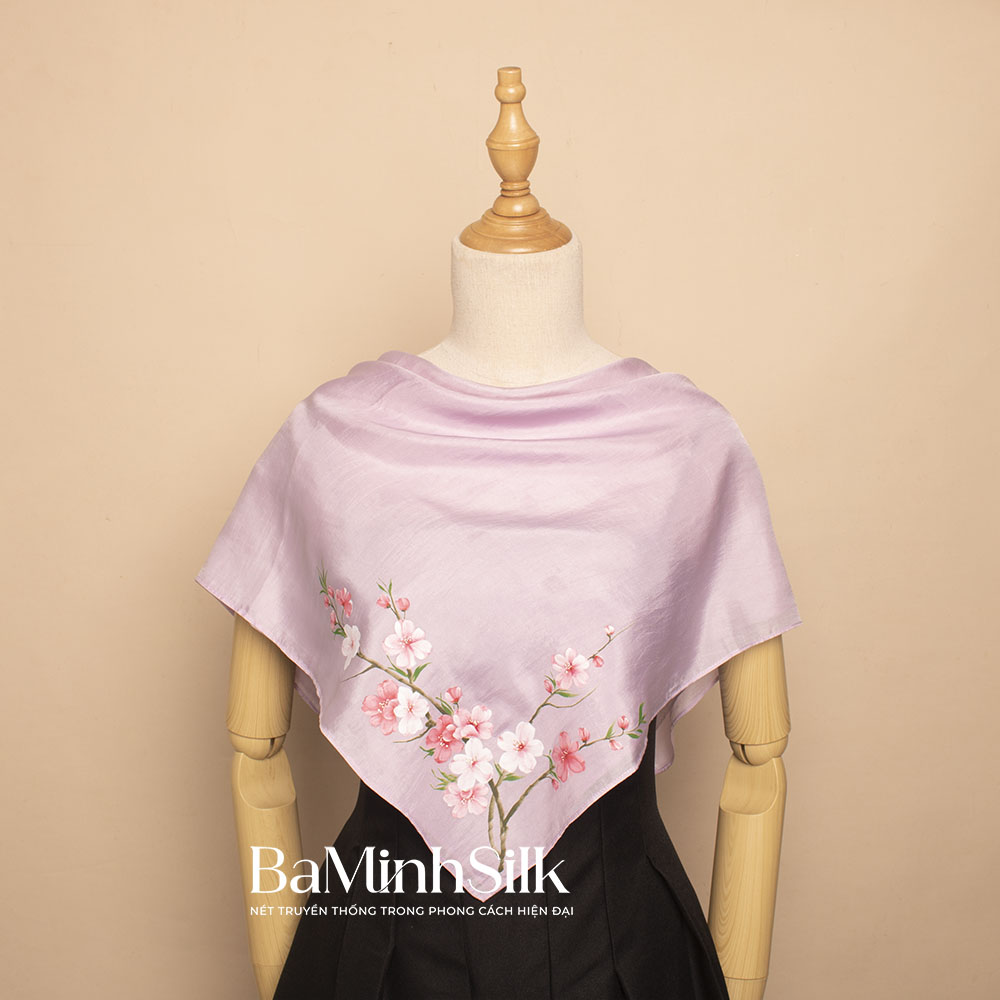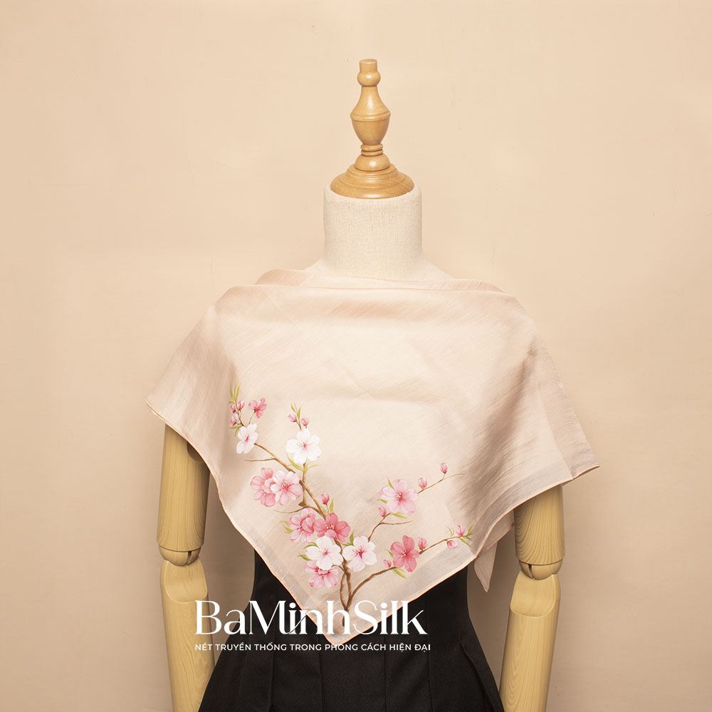 Khăn lụa vuông Cành Đào vẽ tay 70x70cm