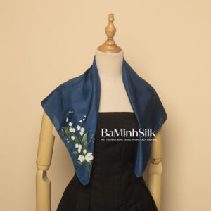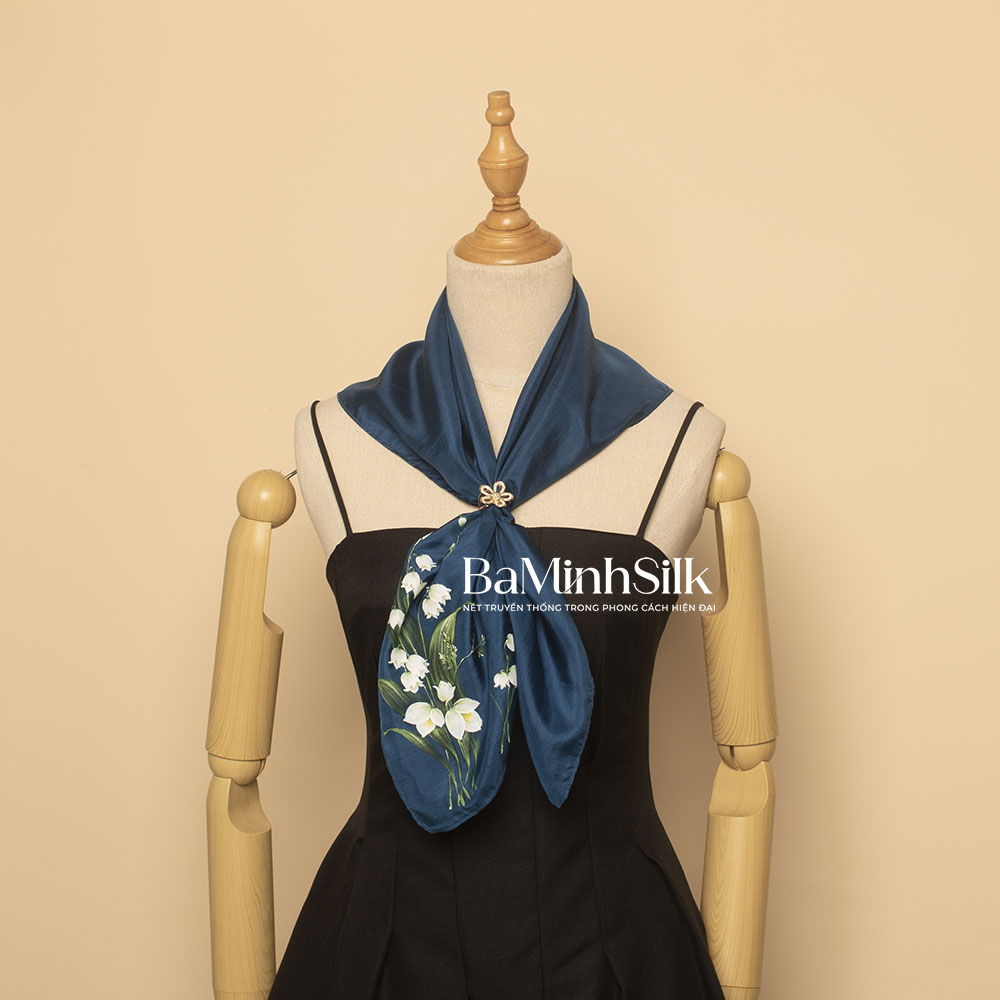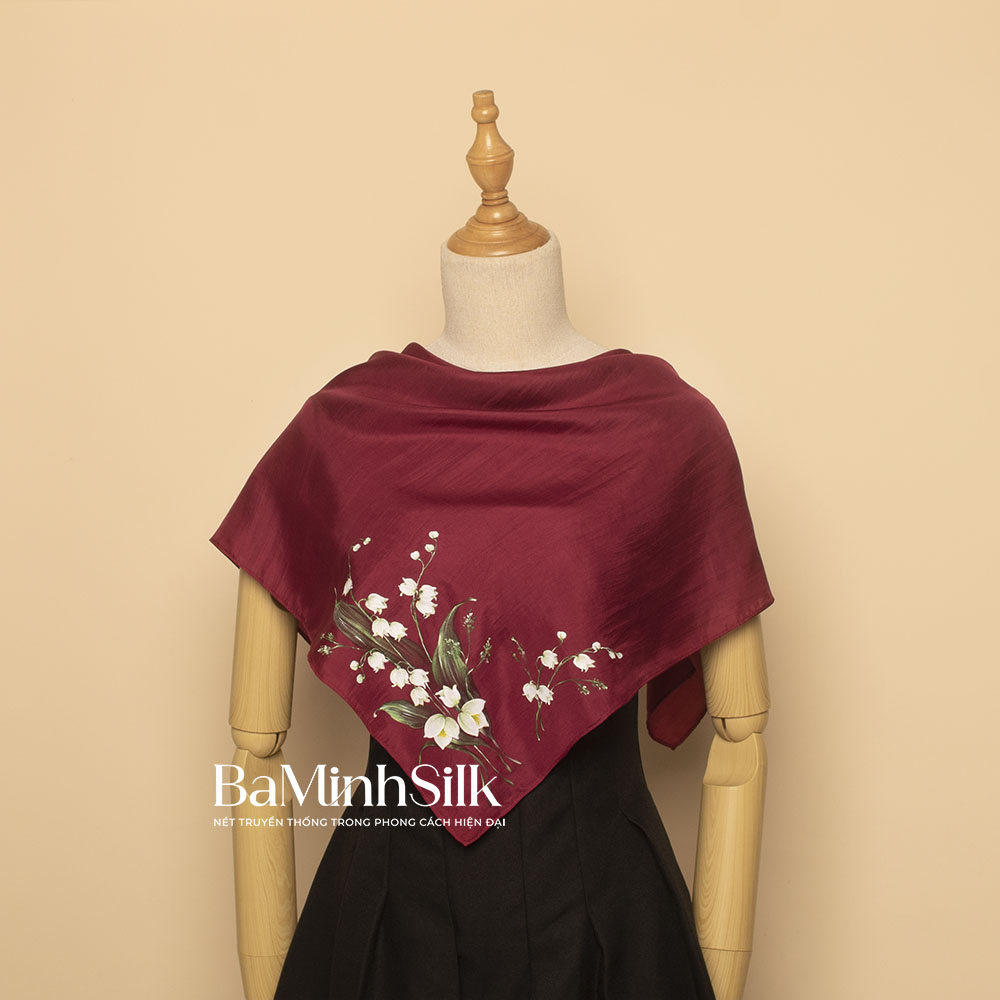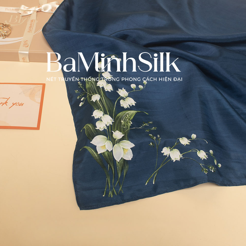 Khăn lụa vuông Hoa Linh Lan vẽ tay 70x70cm