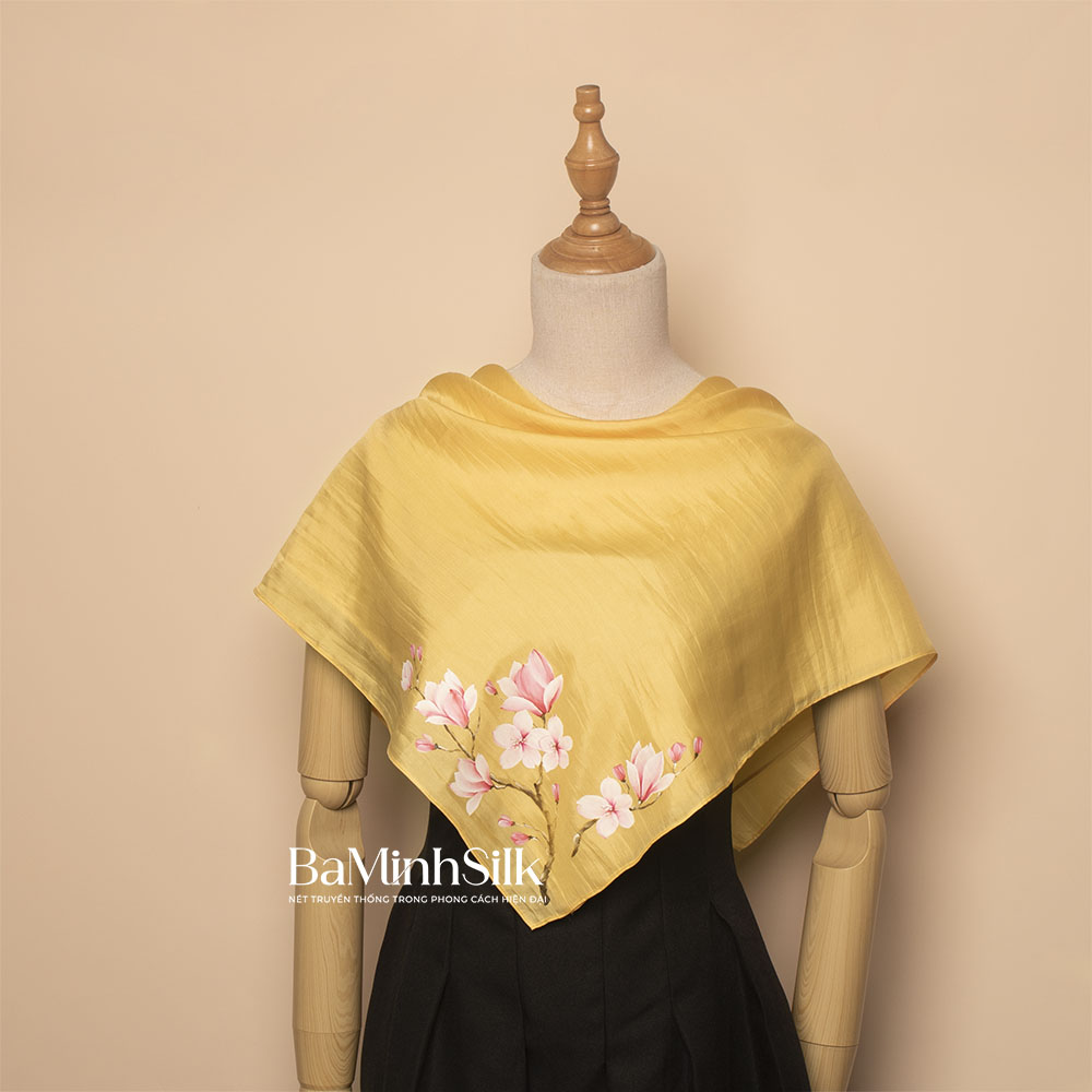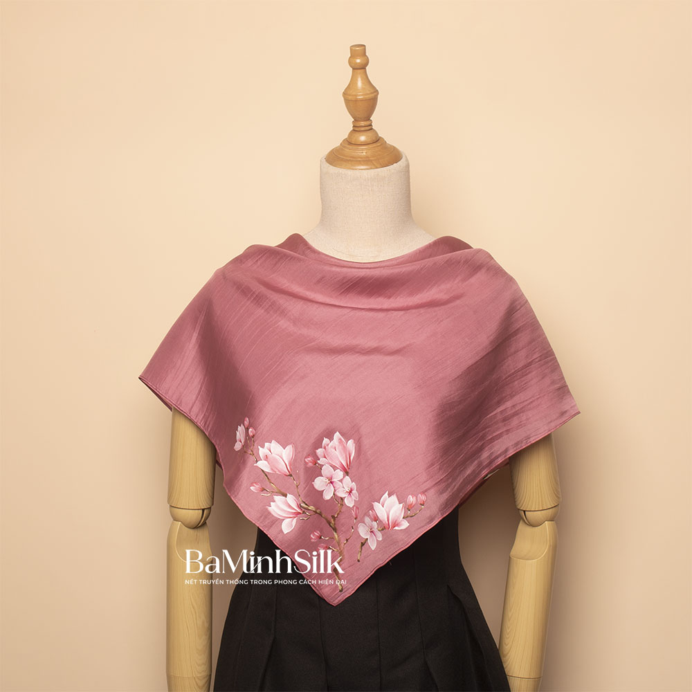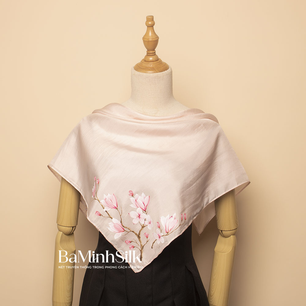 Khăn lụa vuông Hoa Mộc Lan vẽ tay 70x70cm
