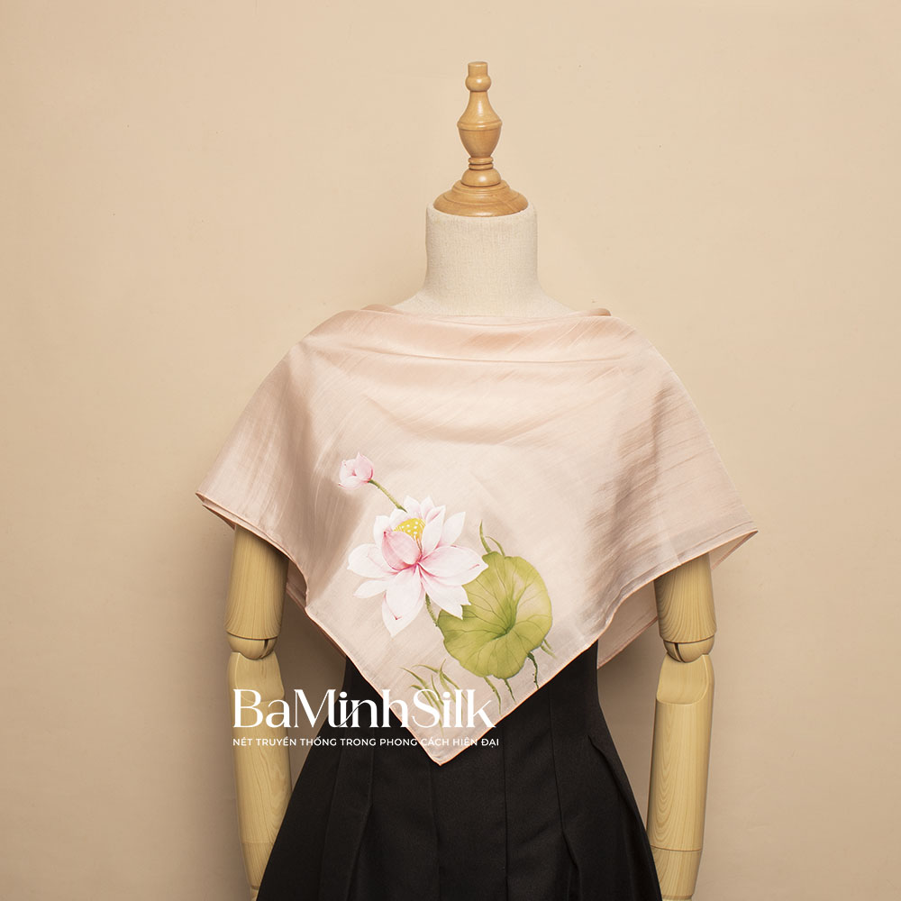 Khăn lụa vuông Hoa Sen vẽ tay 70x70cm