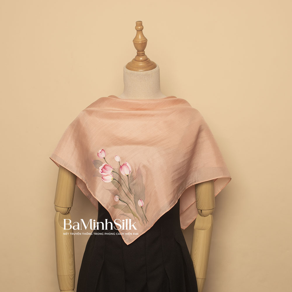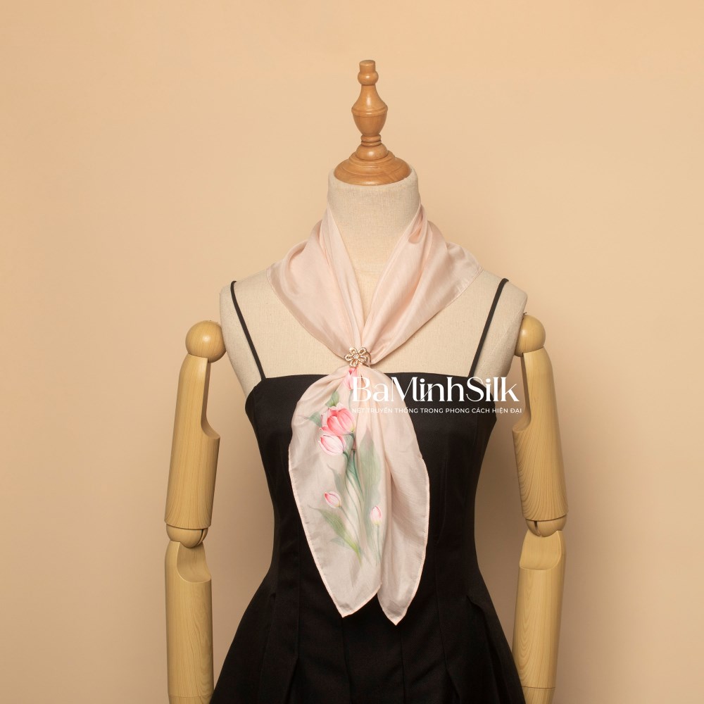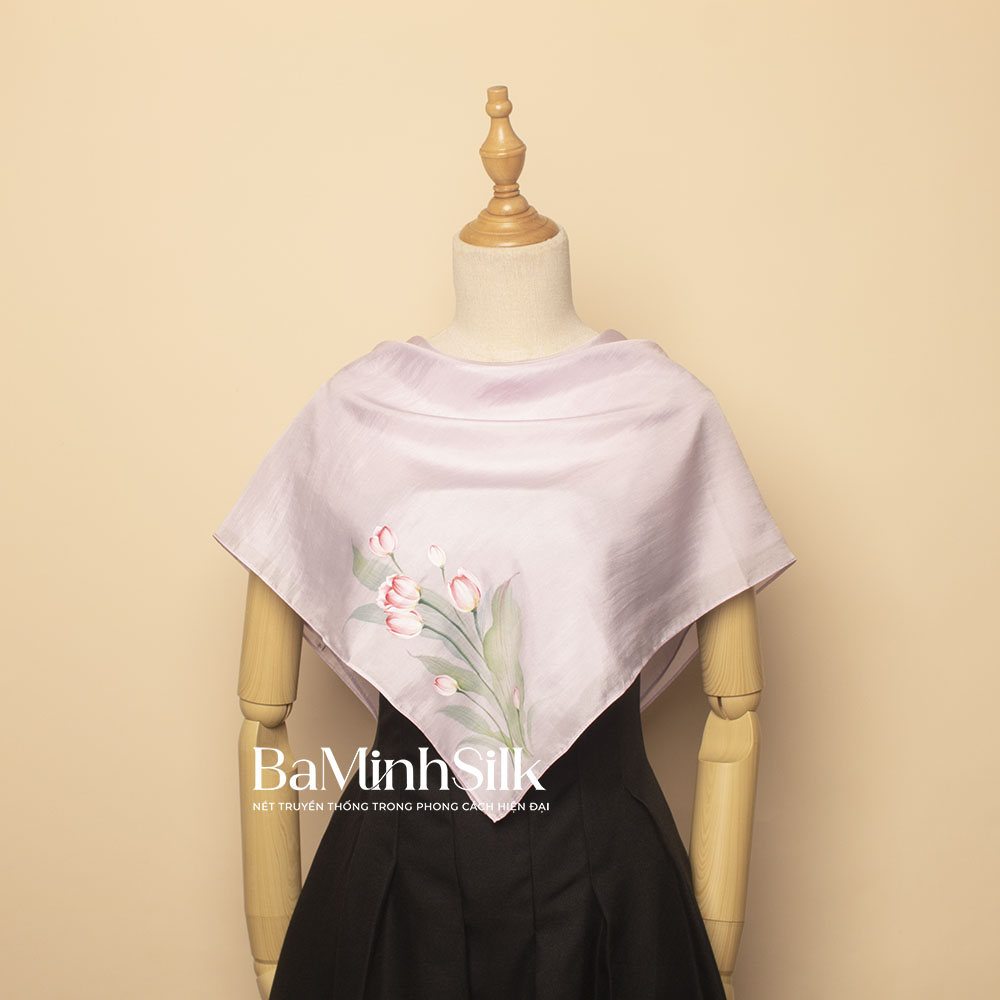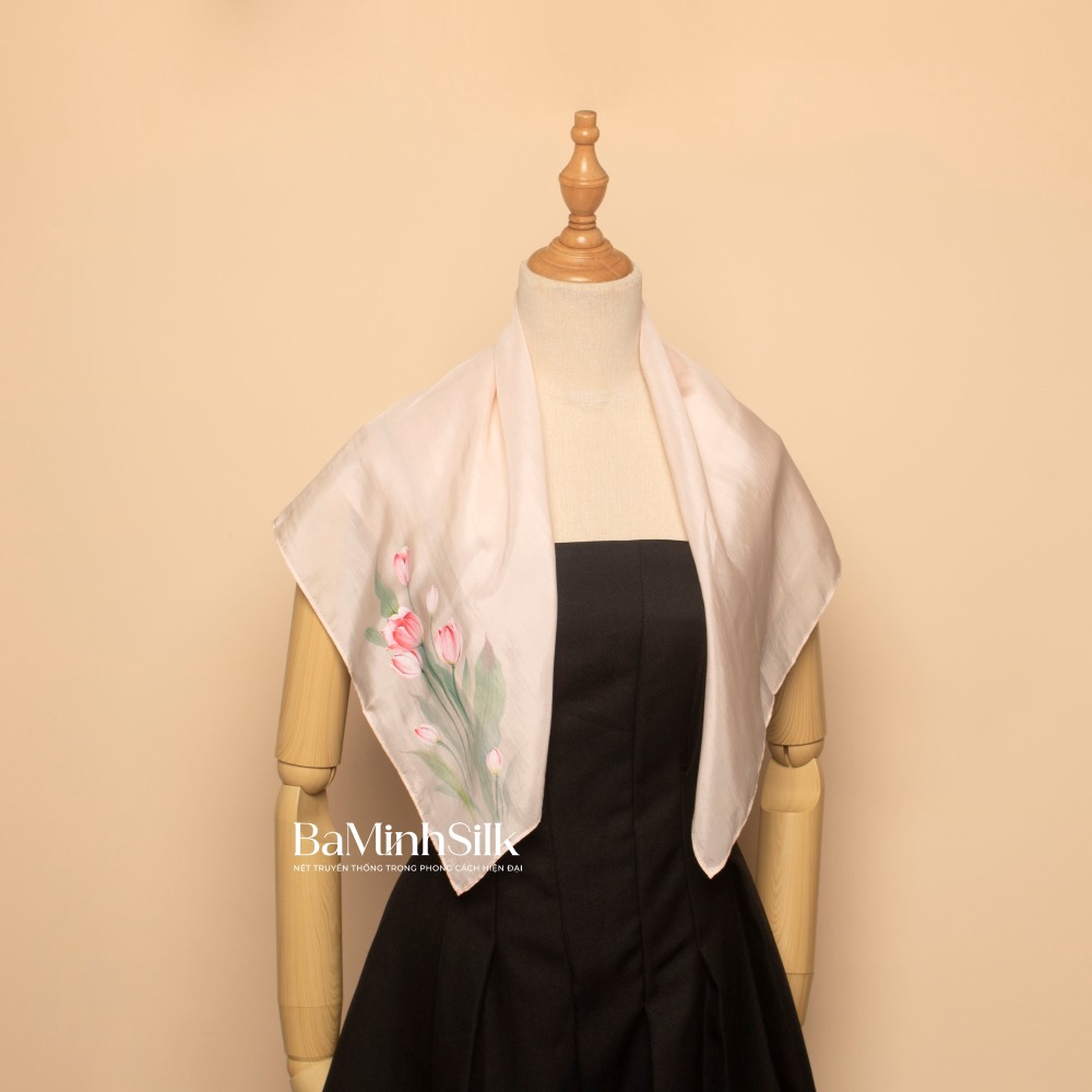 Khăn lụa vuông Hoa Tulip vẽ tay 70x70cm