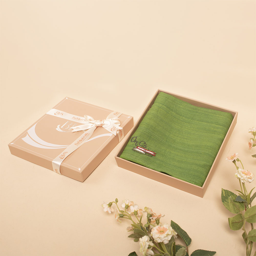 - Chất liệu: dệt thủ công truyền thống từ 100% sợi tơ tằm tự nhiên dưới dạng vải đũi tơ tằm.