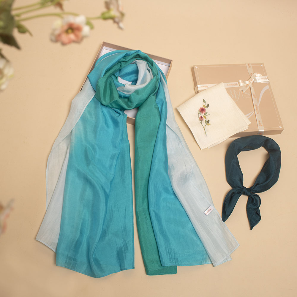 - 01 lụa vuông tơ tằm thời trang thanh lịch Xanh 02 50x50cm