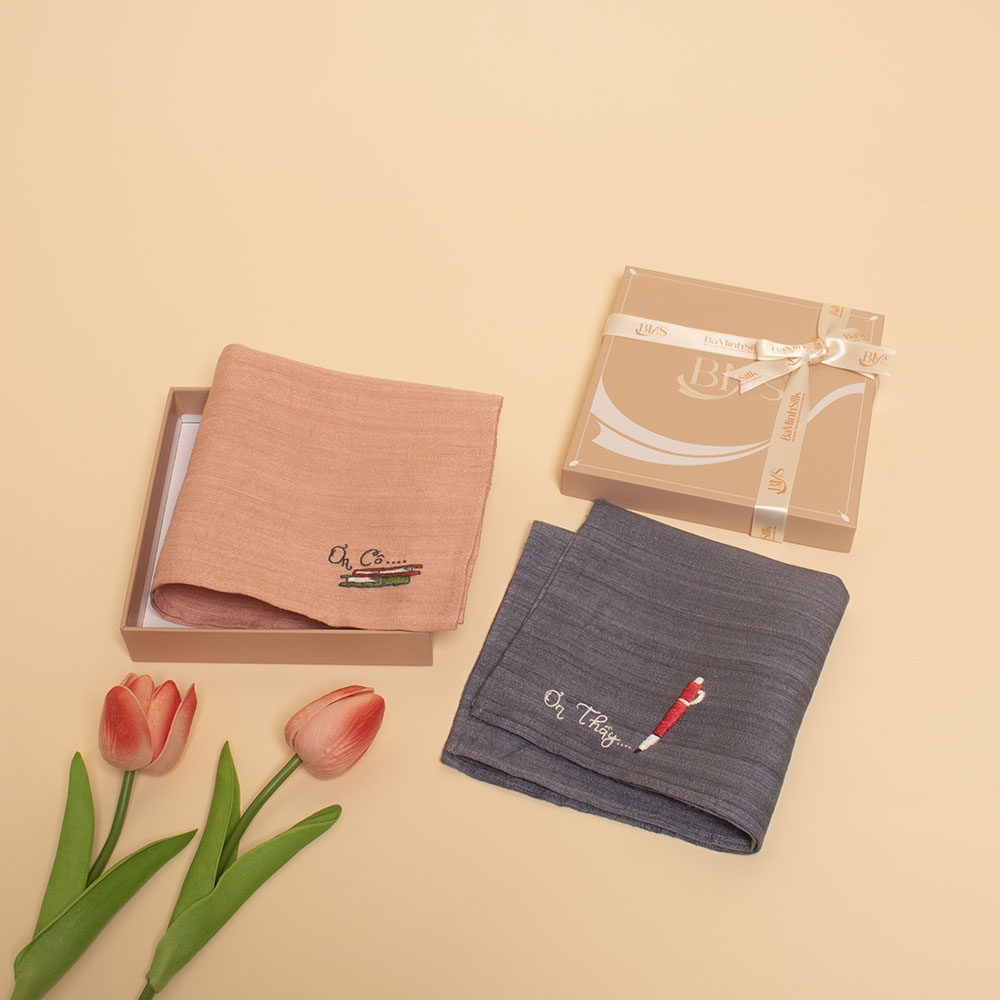 - 01 Khăn tay tơ tằm H05 thêu họa tiết ơn cô size 30x30cm