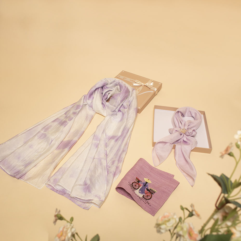 - 01 khăn lụa tơ tằm vuông tím size 70x70cm