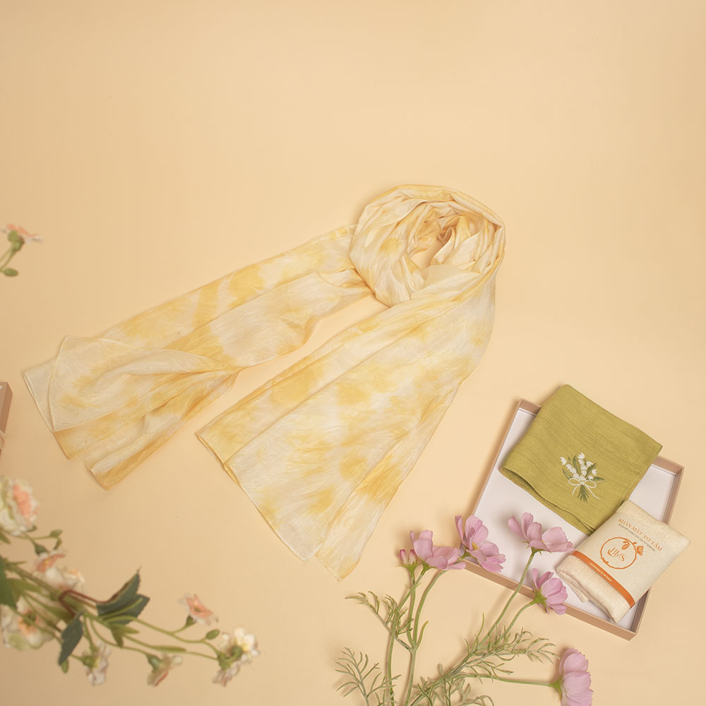 - 01 Khăn choàng lụa tơ tằm shibori thời trang màu vàng size 85x180cm